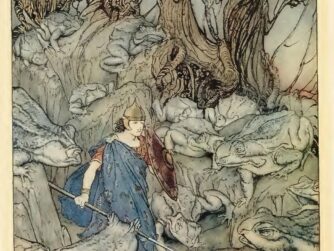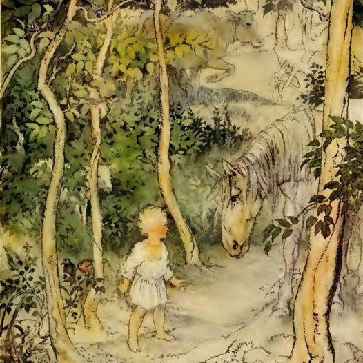 A continuation of The Boyhood of Fionn — we learn more about the Robber, his ways, and were he he came from, we see Finns interactions with kids his own age, and the cruelty of children, as well as a master poet that bestows the gift of knowledge to Fionn. This is one interesting and intriguing story!